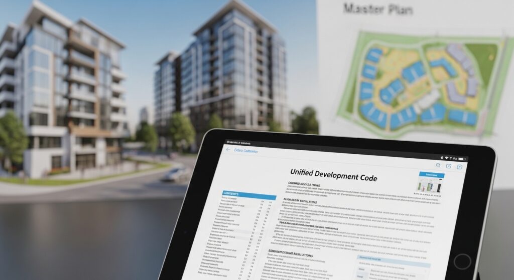 One industry resource noted: “A UDC (Unified Development Code) is a document that is adopted by the local municipality and often combines zoning and other code regulations for the development and construction of a property.”